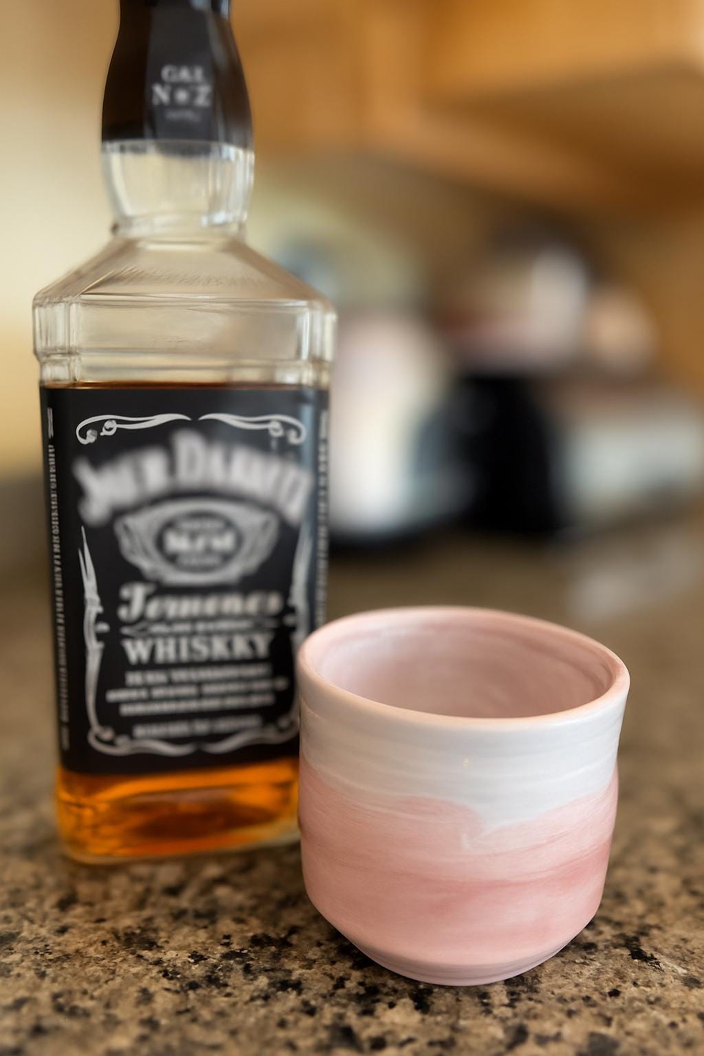 Wheel-thrown porcelain tumbler with an ombre white and soft pink glaze. Each cup is handmade and one of a kind. Perfect for tea, whiskey, wine, or a small coffee.