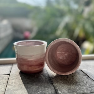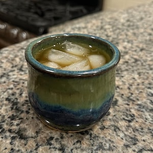 ✔ Holds 10 oz ✔ Approx. 4" tall x 3" wide ✔ Speckled stoneware clay ✔ Dark glaze with hints of red, purple, and blue ✔ Colors are visible mainly in bright light ✔ Dishwasher and microwave safe (but hand washing recommended)