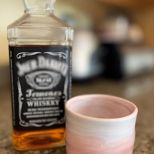 Wheel-thrown porcelain tumbler with a flowy green and blue glaze. Each cup is handmade and one of a kind. Perfect for tea, whiskey, wine, or a small coffee.