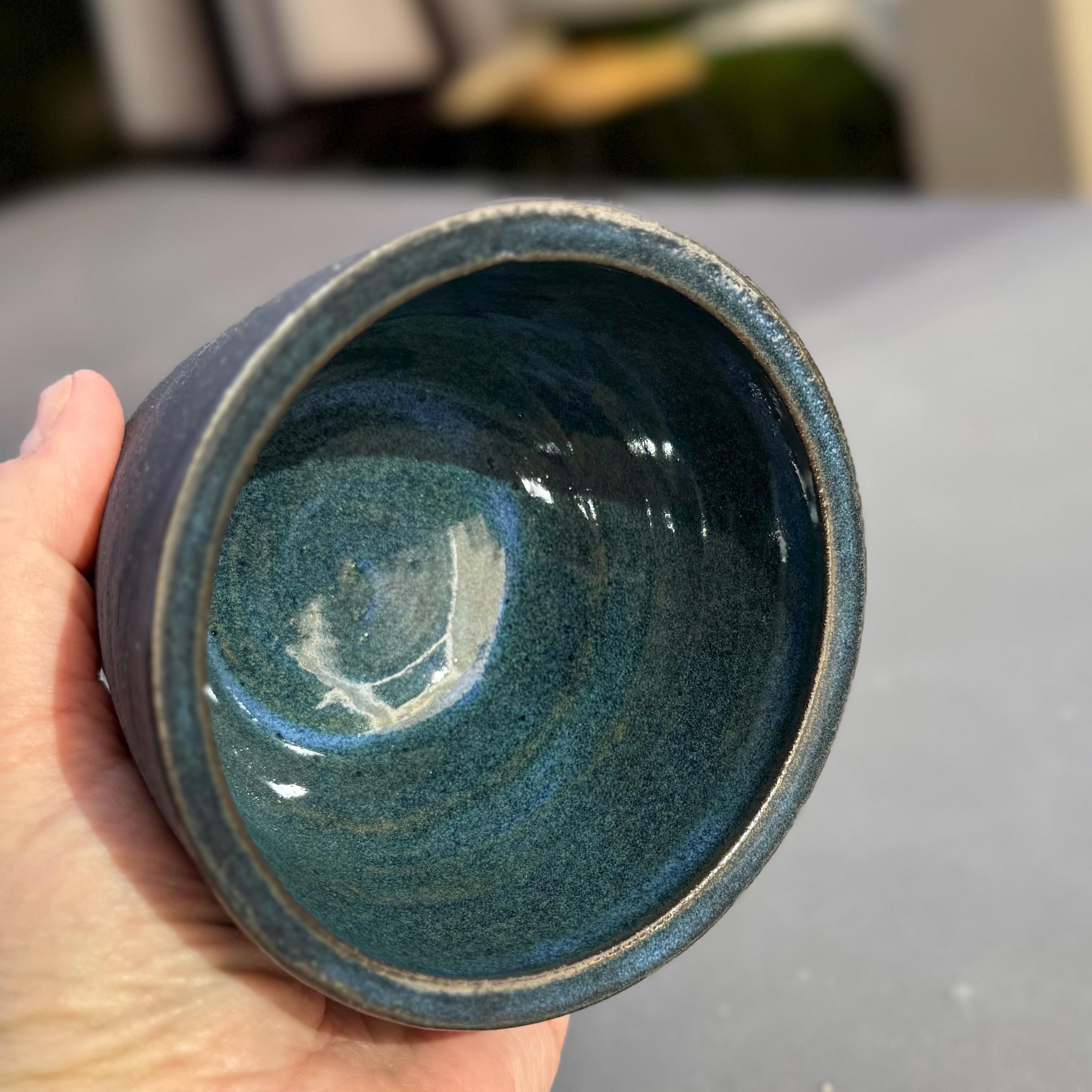 ✔ Handmade on the potter’s wheel ✔ Glossy blue-green glaze interior, raw speckled black clay exterior ✔ Holds approximately 1 cup ✔ Size: 3" tall x 4" wide ✔ Raw clay exterior for a grounded, organic finish ✔ Food safe, microwave safe, and dishwasher safe (hand washing recommended)