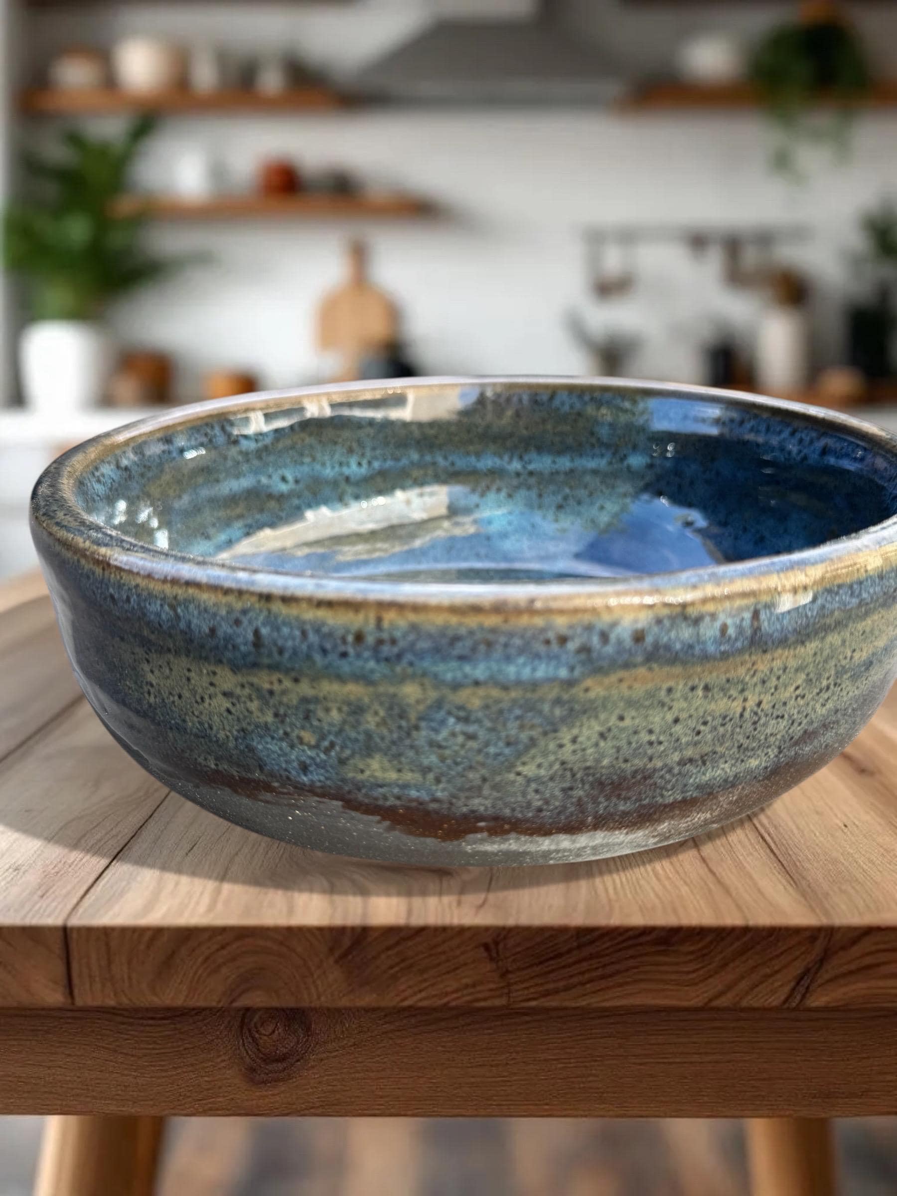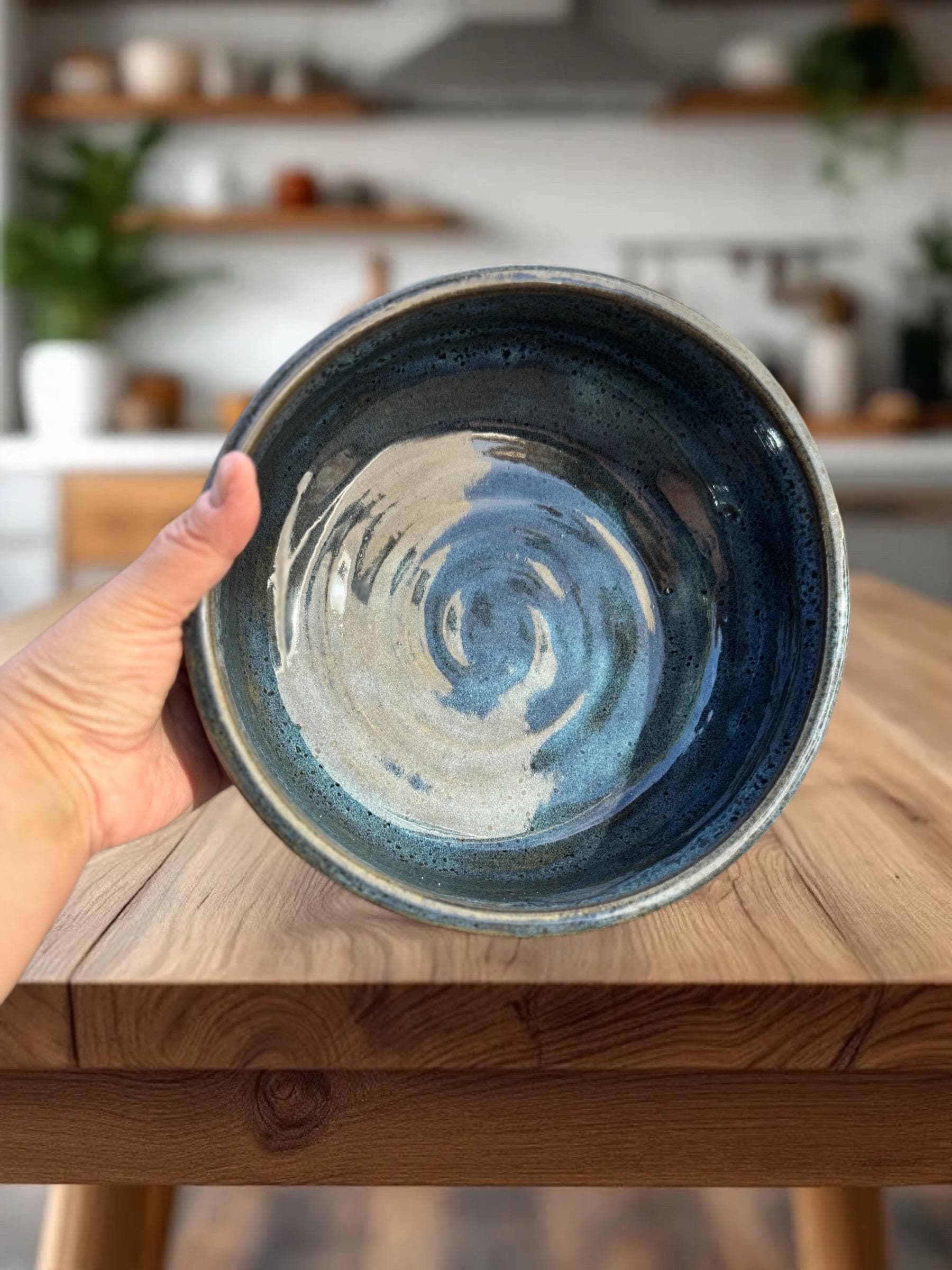 ✔ Handmade on the potter’s wheel ✔ Layered blue glaze with glossy swirl interior ✔ Holds approx. 6 cups ✔ Size: 3” tall x 8” wide ✔ Food safe, microwave safe, and dishwasher safe (hand washing recommended)
