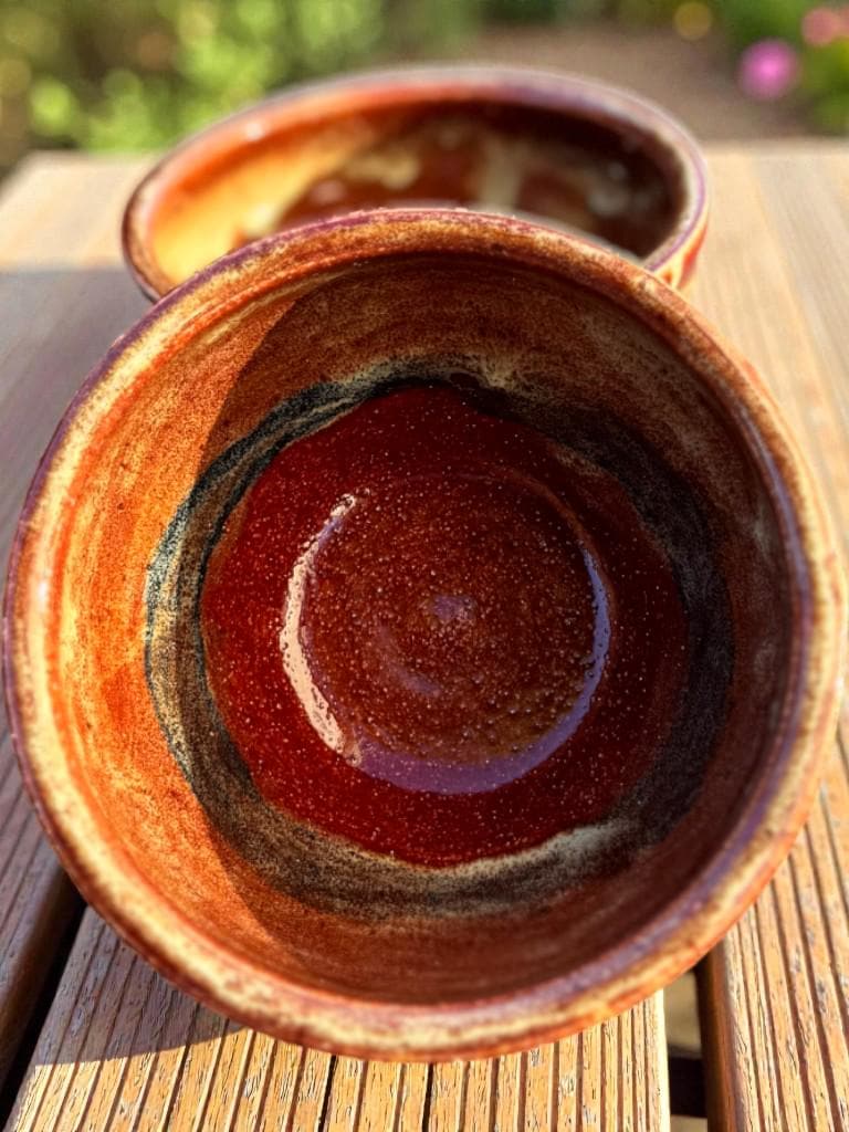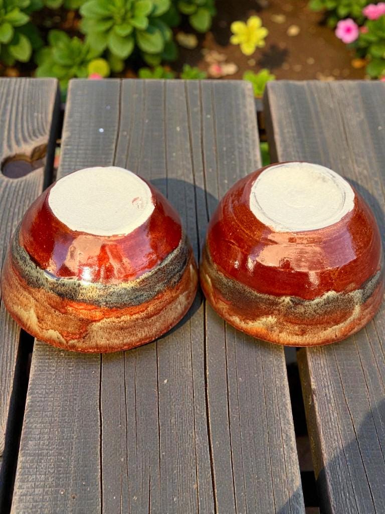 ✔ Set of 2 handmade stoneware bowls ✔ Wheel-thrown and finished by hand ✔ Warm red and earthy glaze with natural variation ✔ “Sisters, not twins” — similar forms with unique details ✔ Size: approx. 2.5” tall x 4” wide each ✔ Food safe and dishwasher safe (hand washing recommended)