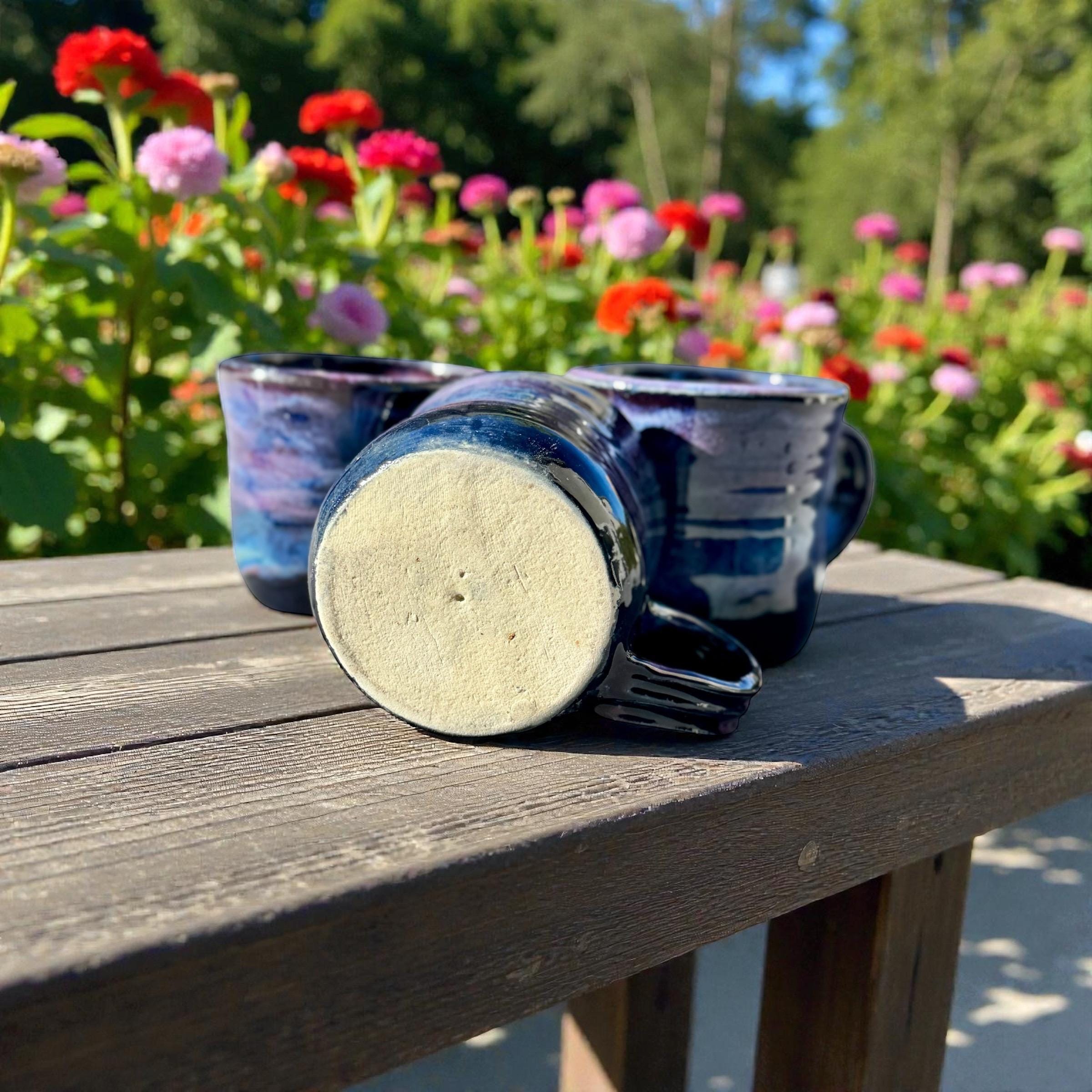 Features: ✔ Holds ~12 oz ✔ 3.5” tall x 3.5” wide ✔ White stoneware clay body ✔ Northern Lights glaze with blues, purples, and aqua tones inside and out ✔ Microwave & dishwasher safe (hand wash preferred) ✔ Durable, wheel-thrown stoneware