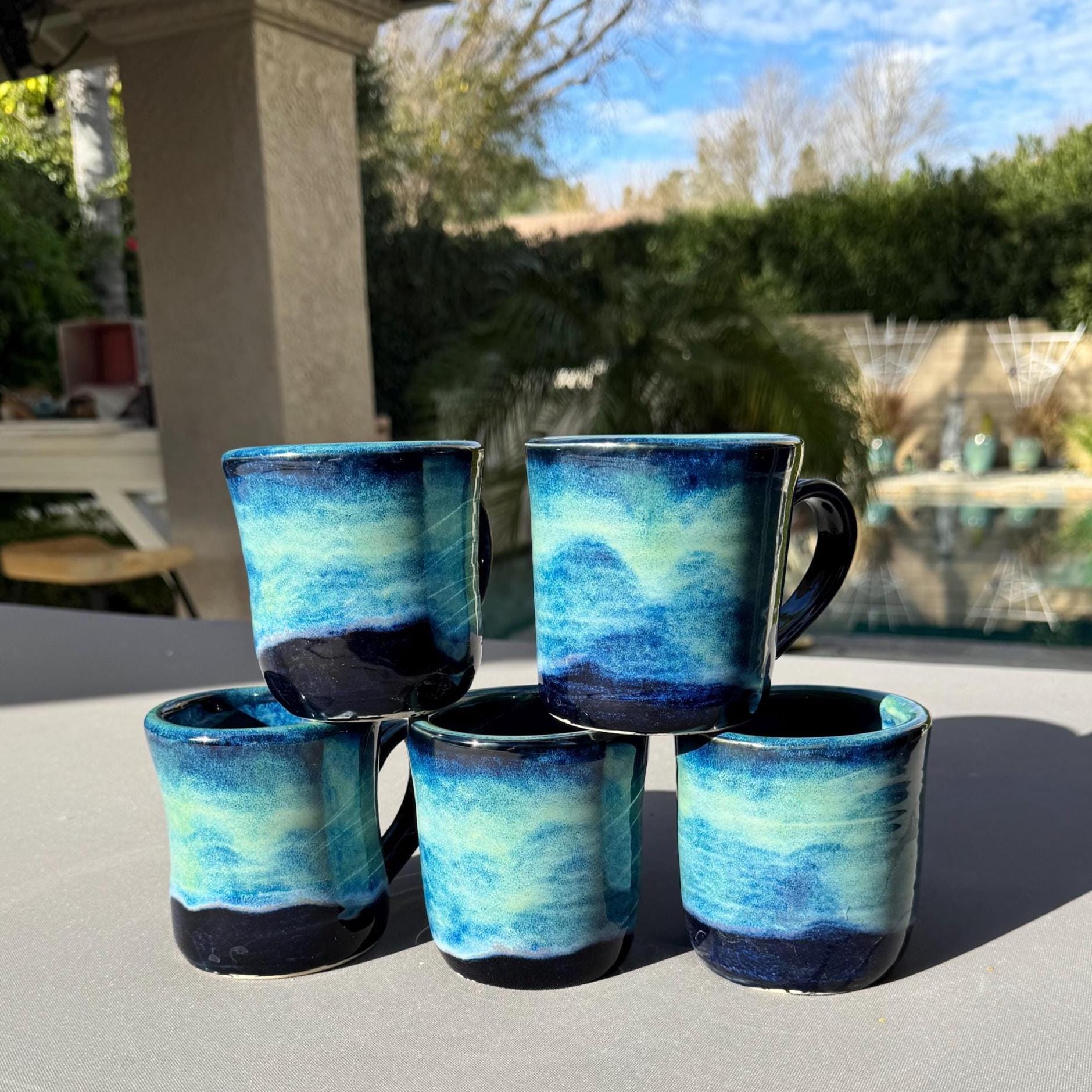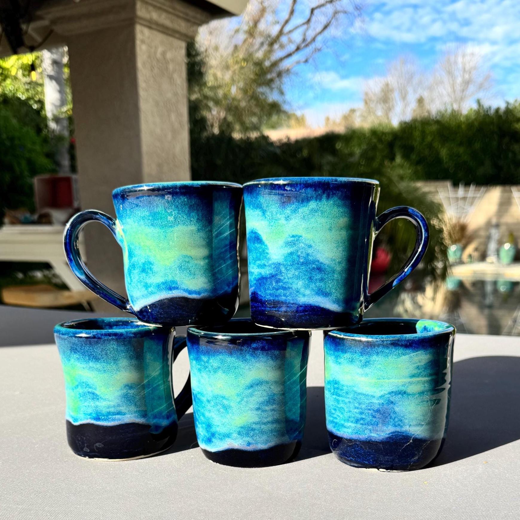 Each mug is individually wheel-thrown and hand-glazed, resulting in subtle variations that make every piece unique; this listing includes multiple mugs made with the same glaze technique.”