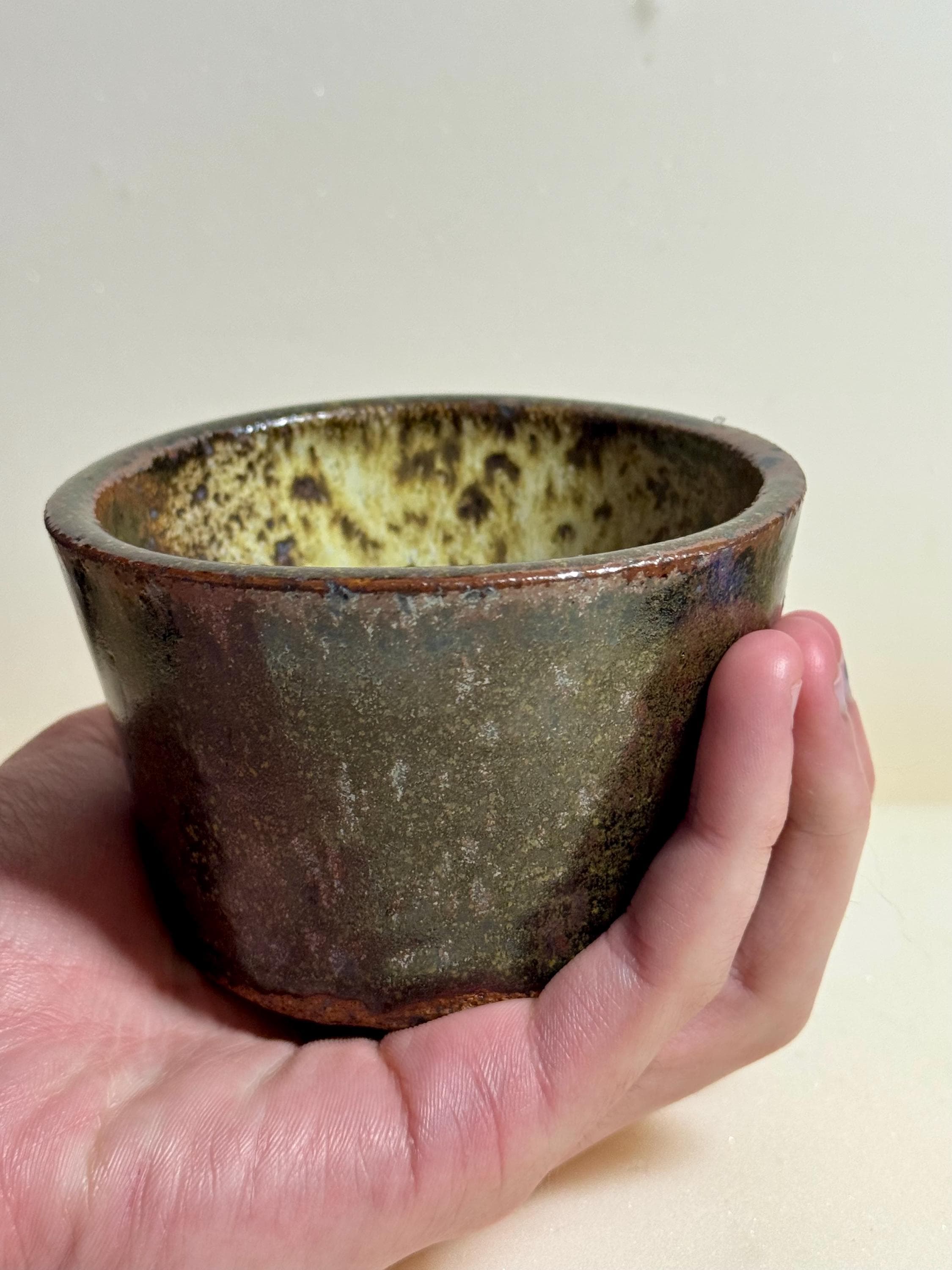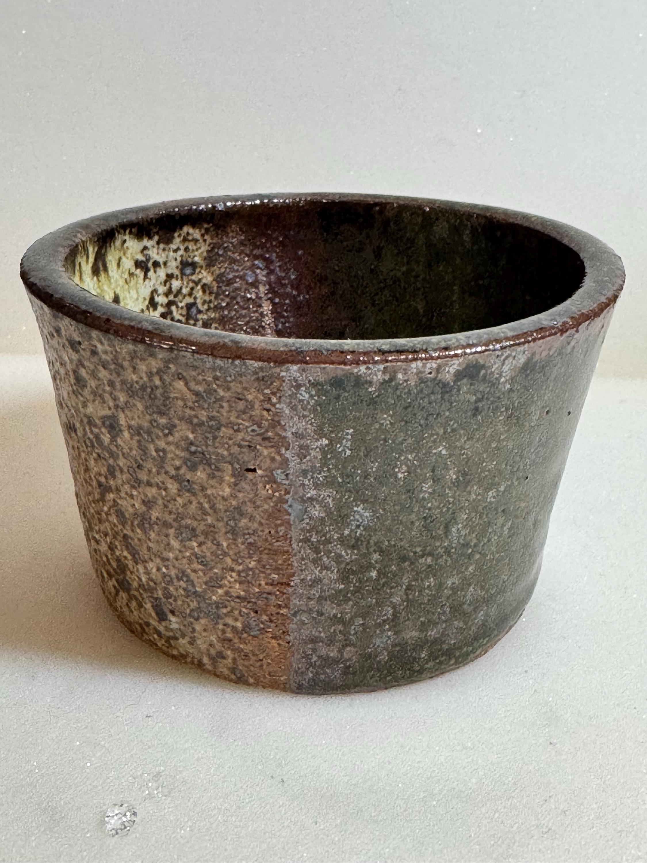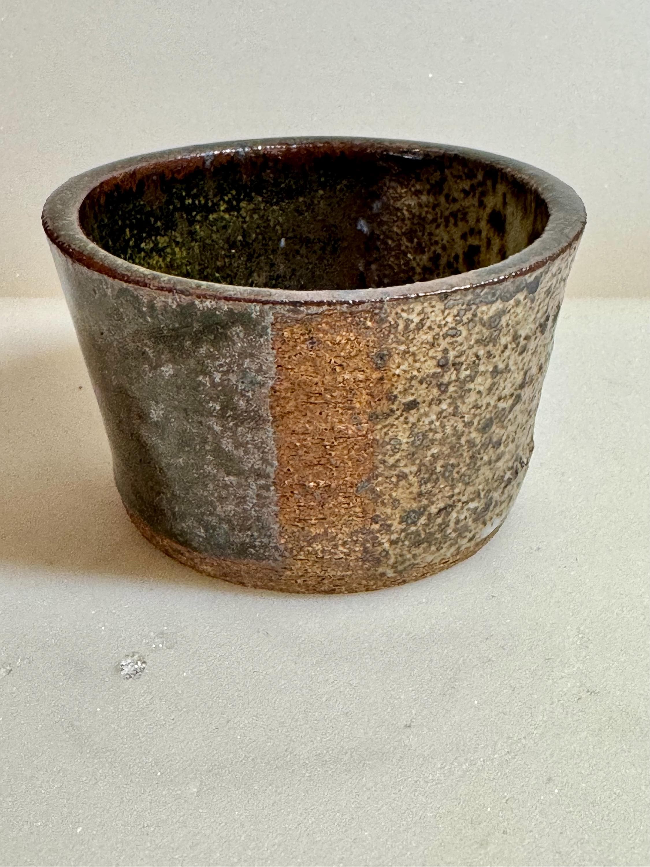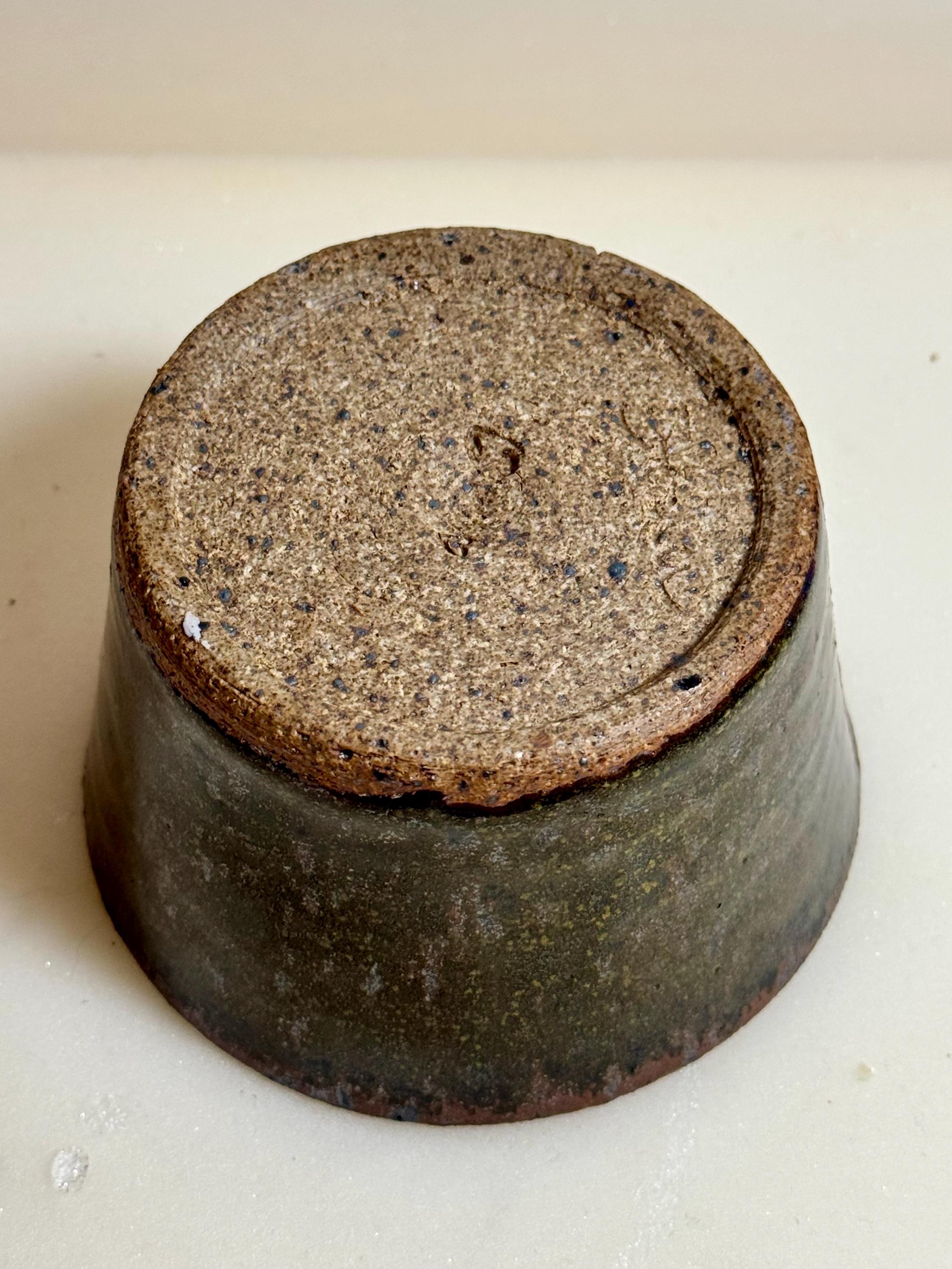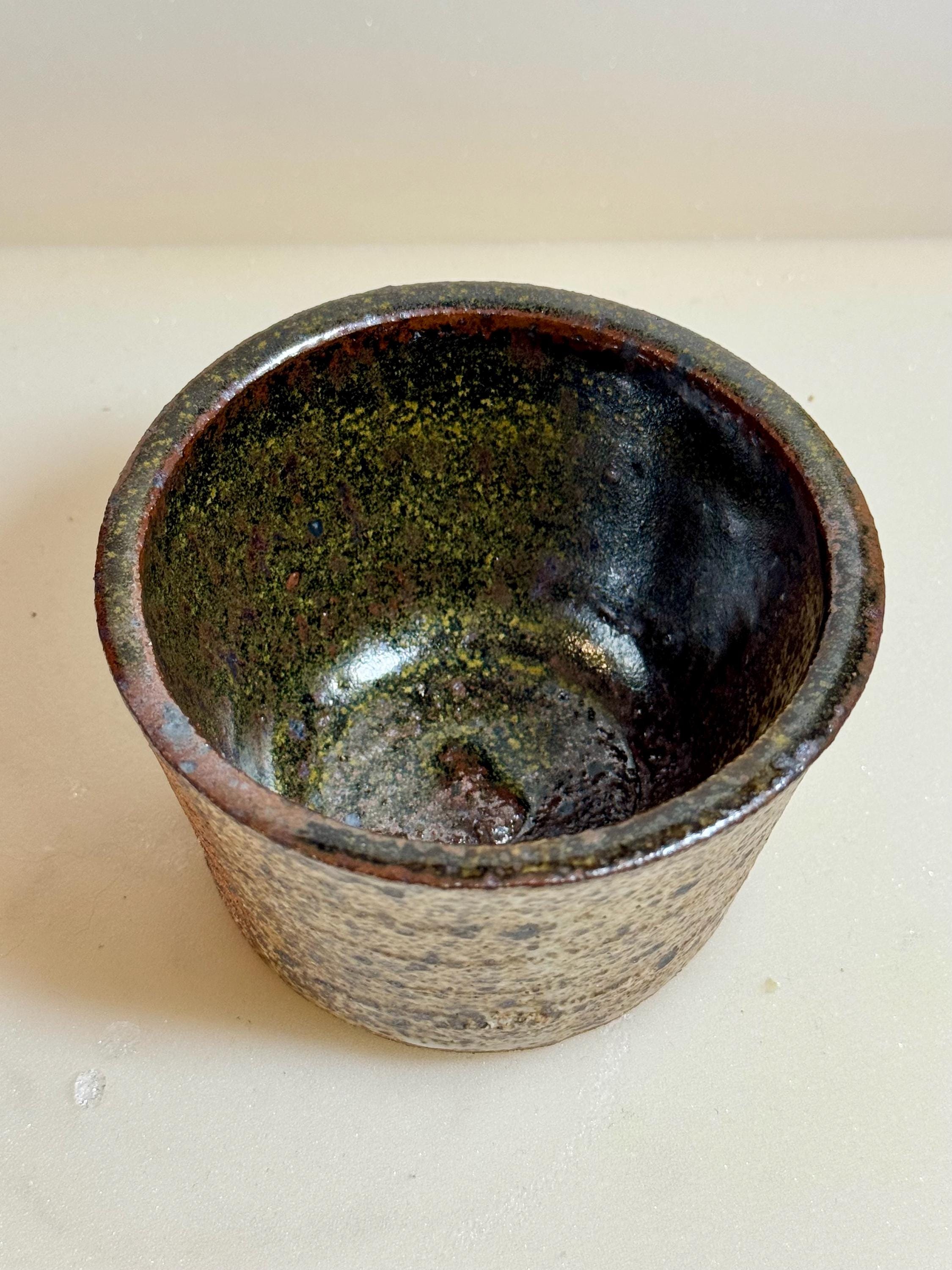 Handmade ceramic bowl crafted from Rods Bod clay and finished in a richly layered, earthy glaze. This 6 oz piece has a beautiful organic texture that highlights the natural character of the clay body, with subtle tonal shifts of moss, iron, and warm brown.