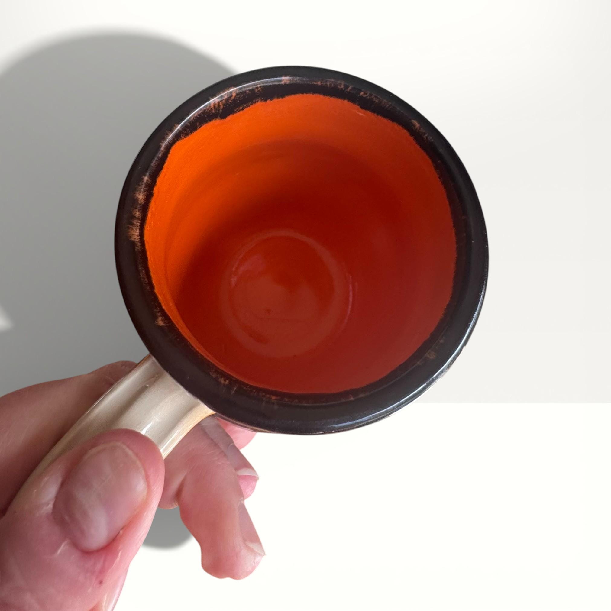 The interior is finished in a vibrant orange glaze that glows when filled — a little surprise every time you take a sip.