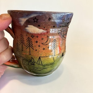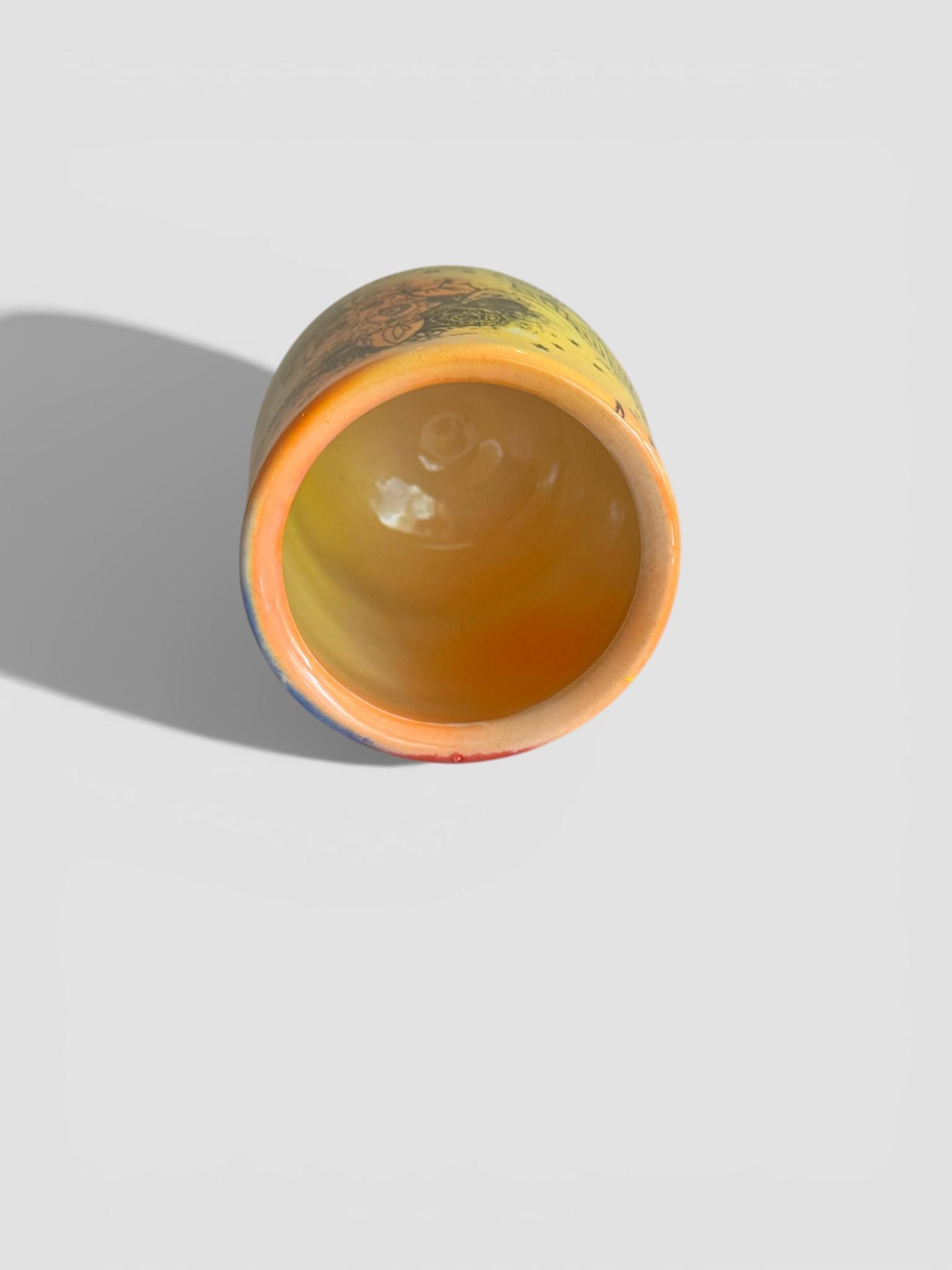 This tumbler is a functional piece of pottery designed for everyday use while still standing out as a small work of art. It makes a unique gift for coffee lovers, pottery collectors, or anyone who appreciates bold handmade ceramics.